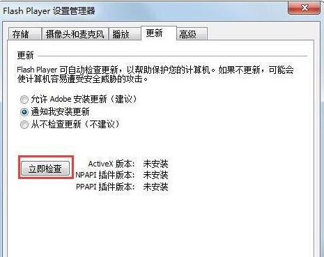 3、在打开的页面中选择更新选项卡,点击下方的立即检查。