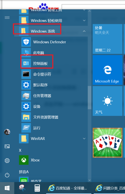 方法一、打开开始菜单,点击windows 系统就可以看到控制面板了。
