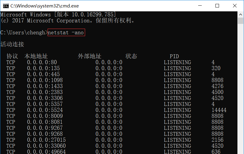 3、输入命令:netstat -ano|findstr "8081查看指定端口
