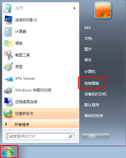首先我们点击左下角任务栏中的开始菜单,在开始菜单里打开控制面板。