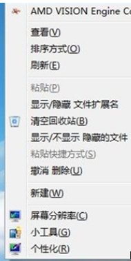 首先右键点击桌面空白处,打开个性化。