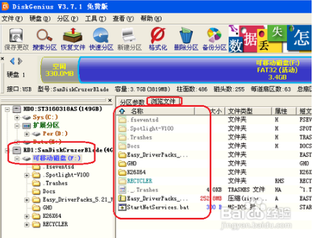 方法三、使用第三方的硬盘管理工具看看能不能看到这些内容,这样也可以解决u盘文件不显示的问题。