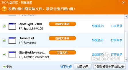 方法一:首先尝试使用杀毒软件对u盘进行扫描,看看是不是u盘中毒了。