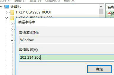 4、还是在注册表编辑器中,找到路径:[HKEY_LOCAL_MACHINE\SOFTWARE\Microsoft\Windows\CurrentVersion\Themes\DefaultColors\Standard],这个路径有点长,但是需要认真的去找,然后,双击打开如下图的window文件,进行如下设置;