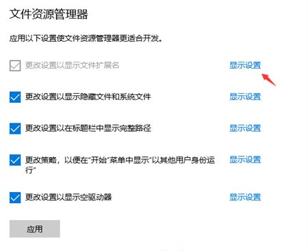 4、在高级设置中勾选“隐藏已知文件类型的扩展名”然后应用即可。