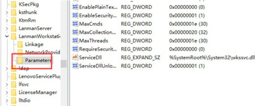 2、依次选择HKEY_LOCAL_MACHINE\SYSTEM\CurrentControlSet\Services\LanmanWorkstation\。