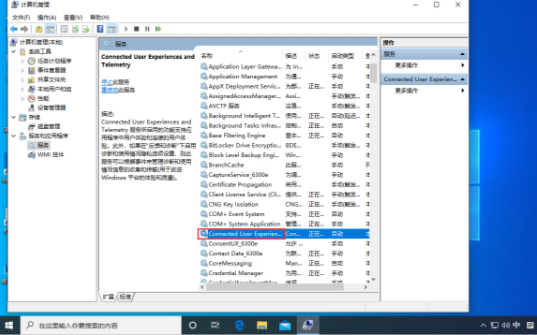 展开“服务和应用程序”、“服务” ,找到名为“Connected User Experiences and Telemetry”的服务;