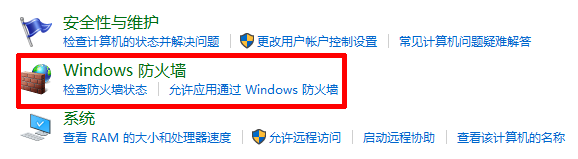 第三步:进入控制面板后选择系统和安全,然后选择防火墙选项。