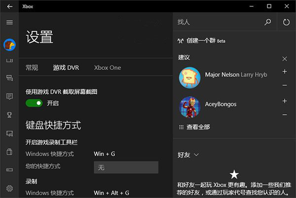 打开Xbox游戏,在游戏DVR界面关闭使用游戏DVR截取屏幕截图即可。