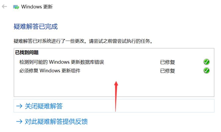 10、系统弹出修复结果,其中会显示所有的错误和修复结果,全部修复成功后,点击关闭按钮,重新检查更新即可。