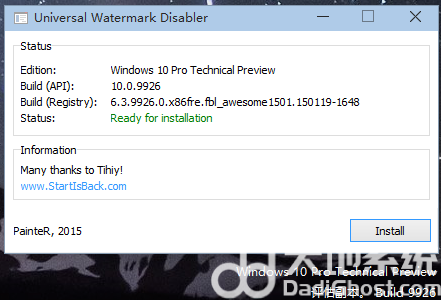 3、点击Install按钮,稍等一会儿它就可以帮你去除版本号水印了,完成后显示绿色。