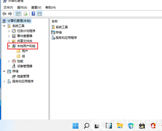 2、接下来在打开的计算机管理窗口中,我们找到“本地用户和组”菜单项。