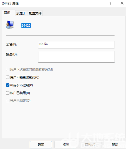 4、双击后打开该用户的属性窗口,在这里可以修改该用户的名称。