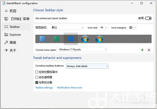 1、我们需要借助一款软件实现,自行搜索下载安装startallback软件打开,选择Taskbar进入。