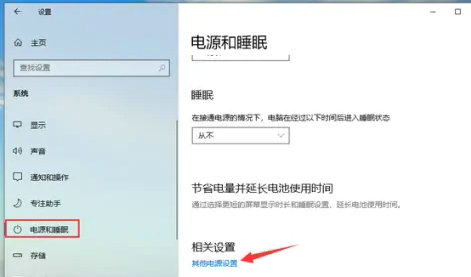 3、在“电源和睡眠”中找到并打开“其他电源设置”