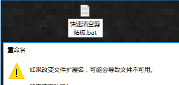 3、将文本重新命名为“快速清空剪贴板.bat”并保存在D盘中。