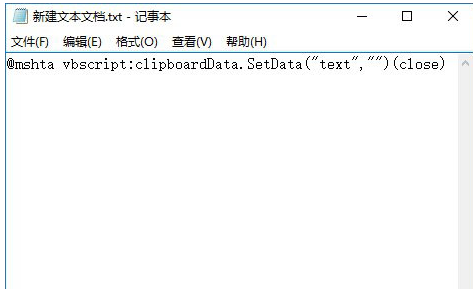 2、打开文本输入【@mshta vbscript:clipboardData.SetData("text","")(close)】。