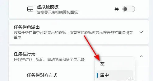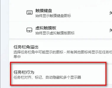 3、往下拉找到任务栏行为点击进去,点击居中