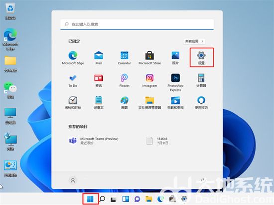 1、选择开始图标,点击“设置”;