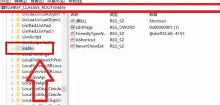 在弹出的注册表编辑器窗口中,点击lnkfile选项