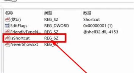 在窗口栏中,鼠标右键点击IsShortcut选项,在下拉窗口中点击删除即可