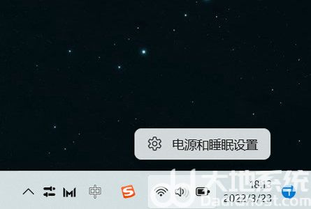 2、也可以查看电池预计剩余时间,点击屏幕右下角的电池图标,点击【电源和睡眠设置】