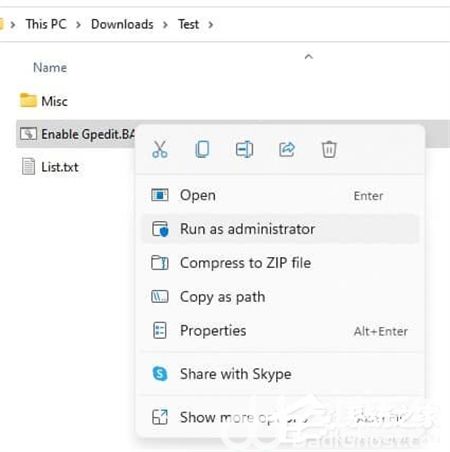 2、右键点击BAT文件,以管理员身份运行。