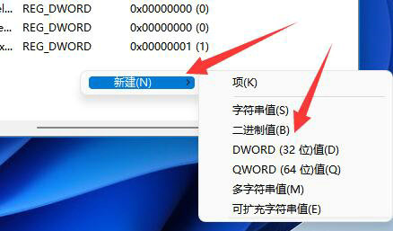 6、进入后在右边空白处“新建”一个“DWORD值”