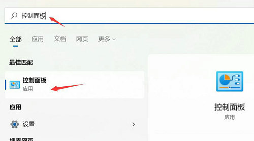 2、Windows搜索窗口搜索框输入控制面板,点击打开系统给出的最佳匹配控制面板应用