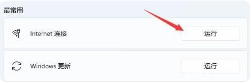 4、点击一下internet连接右侧的“运行”按钮,系统会自动处理win11wifi功能消失的问题。