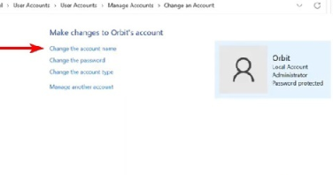 4、鼠标单击左侧的“change the account name”就可以进行更改