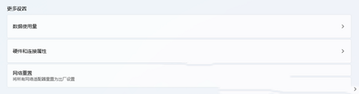 3、更多设置下,点击【网络重置(将所有网络适配器重置为出厂设置)】。