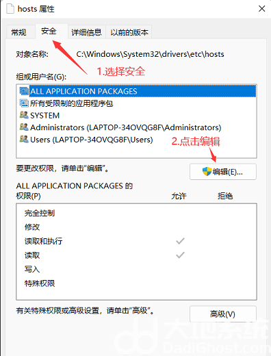 修改hosts文件权限