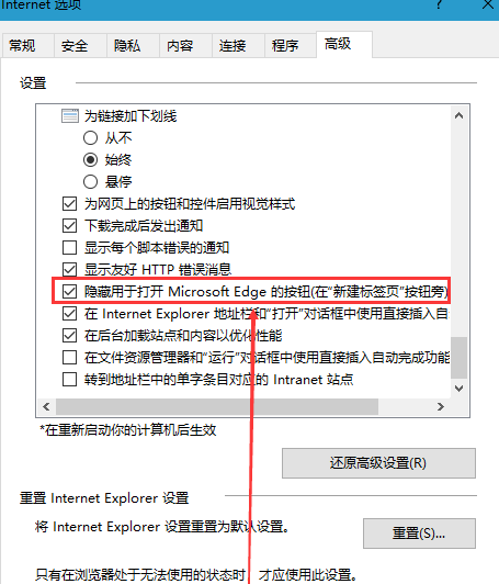 win10系统去掉IE浏览器“打开Microsoft Edge”按钮的方法