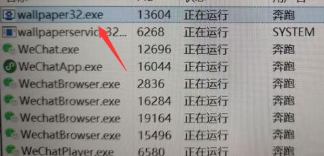 3、然后在其中找到桌面壁纸软件,例如“wallpaper engine”,右键选择“结束任务