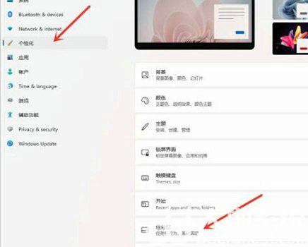 3、然后在左侧边栏中找到个性化,再点击右侧的“任务栏”