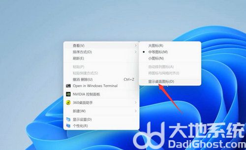 2、查看中选择最下面的显示桌面图标,如图所示。