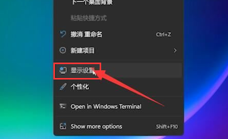 1、鼠标右键桌面空白处,打开显示设置窗口