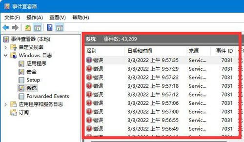 4、在右边选择想要查看的日志类型,这里我们选择“系统”