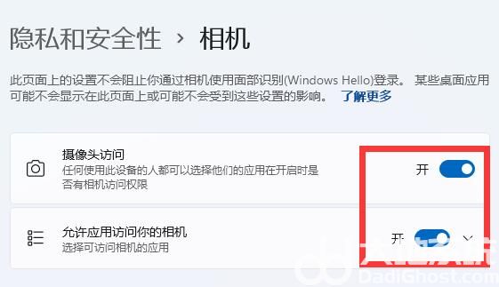 3、随后开启摄像头访问的两个权限就能使用系统相机了