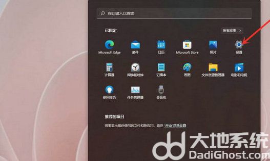1、点击桌面下方窗户图标的开始菜单,点击【设置】,打开win11设置界面