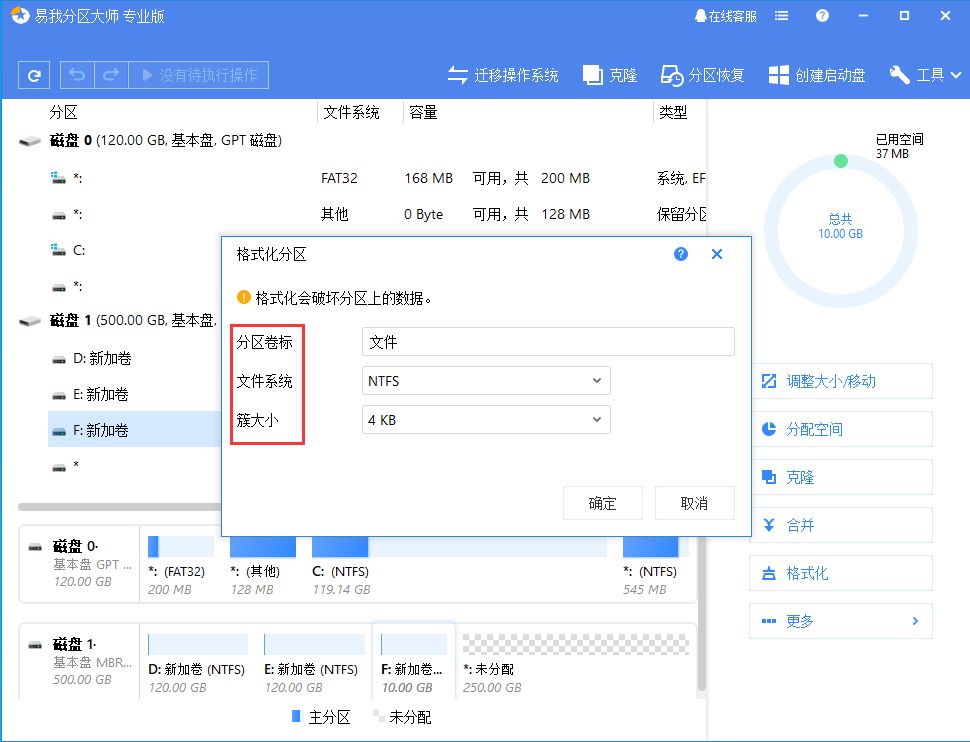 (3)设置好卷标、文件系统、簇大小等信息,点击确定。