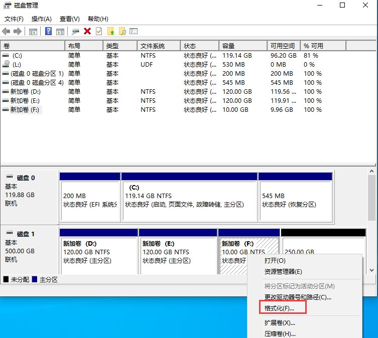 3、通过分区工具进行格式化: