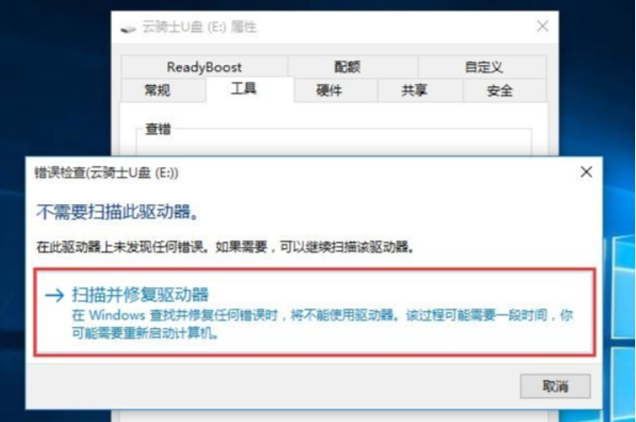 2、打开属性对话框,选择“工具”选项卡,点击“开始检查”进行查错处理操作。