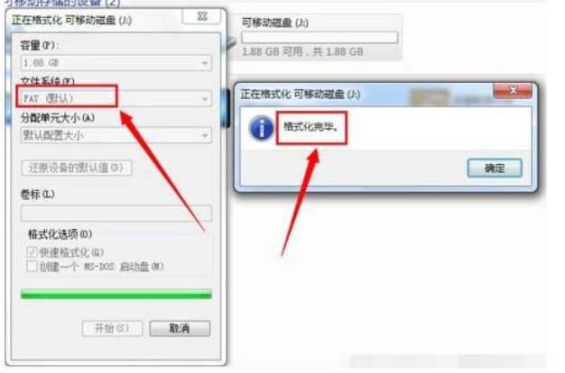 4、当出现以上错误提示时,由于大面板坏道的产生,导致U盘可用容量减少,因此只能使用“Fat”文件系统来格式化U盘。