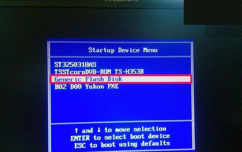 2、进入快速启动窗口,在窗口,找到自已U盘的名称,这里为“Generic Flash Disk”,这是我U盘的名称,有的可能前面为USB-HDD ......,这样也为U盘选项。