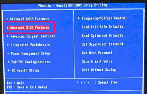 3、另外,介绍一下其它传统BIOS的设置方法,大多开机立即按Del进入BIOS,也有的为F2或F8等等。进入后,选择“Advanced BIOS Features”这一项,按Enter进入。