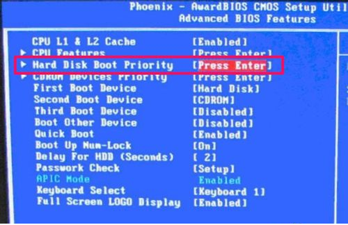 4、进入后,找到“Hard Disk Boot Priority”这一项,即优先启动硬盘,按Enter。