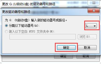 4、然后为当前的u盘分配一个没有被占用的盘符就可以了。如图: