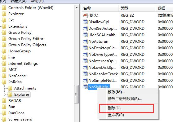 7、用户一次展开“HKEY_CURRENT_USER\Software\Microsoft\Windows\CurrentVersion\Policies\Explorer”,把“nodrives”键值删除掉即可。如图: